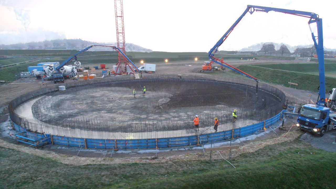 Project descriptionThe designed tank is used for the storage of 20,000 m³ of water-polluting substances and was classified as a "LAU" facility according to VAwS. The retention in the sense of a secondary barrier was designed and constructed as an uncoated impermeable surface in accordance with DAfStb guideline BUmwS as a circumferential combined reinforced concrete containment space.